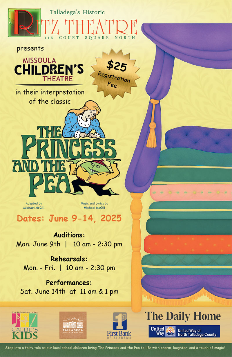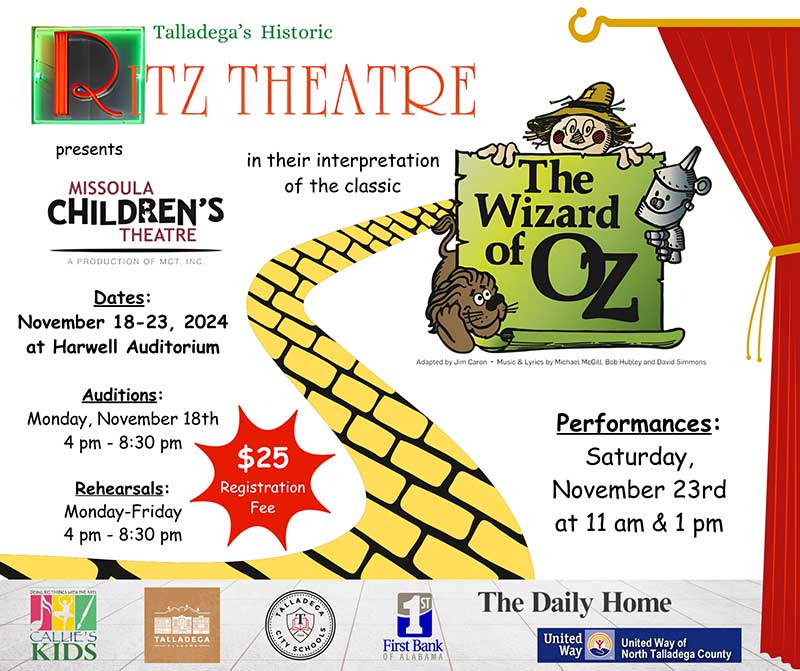 Talladega AL. Talladega’s Historic Ritz Theatre and Callie’s Kids Foundation is pleased to announce that Missoula Children’s Theatre (MCT) will conduct their 20th Annual Fall Residency at the theatre on Courthouse Square the week of November 13 -18.